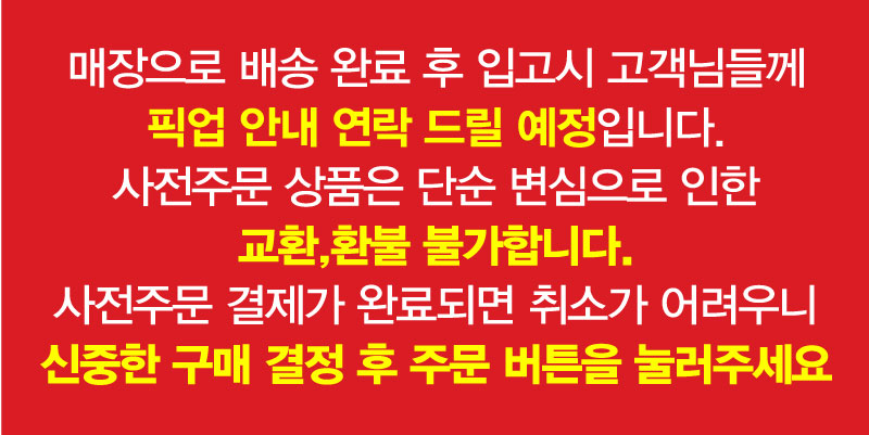 매장과 동시에 판매되고 있어 구매후에도 품절처리 될 수 있습니다.